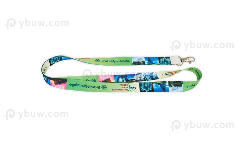 Full color lanyards, also called heat transferred lanyards, both sides printed with full color logo and background.