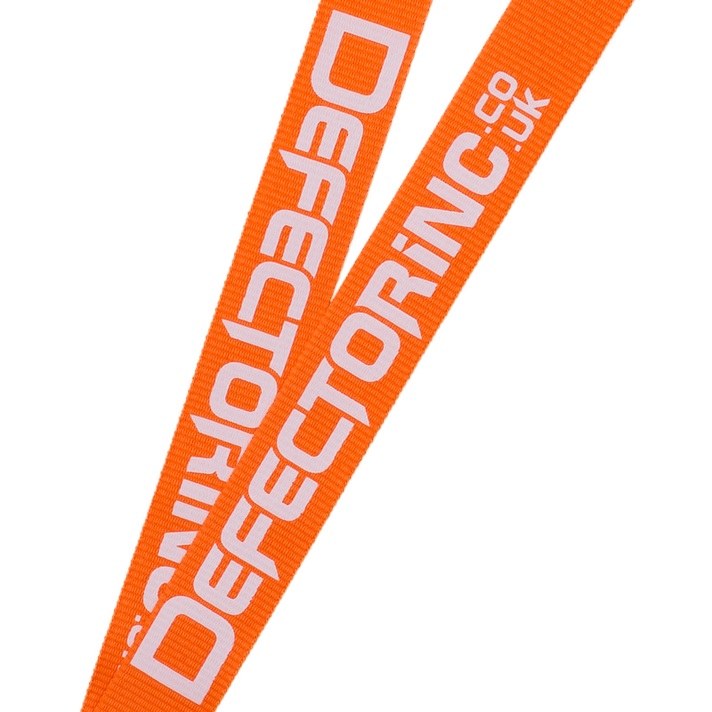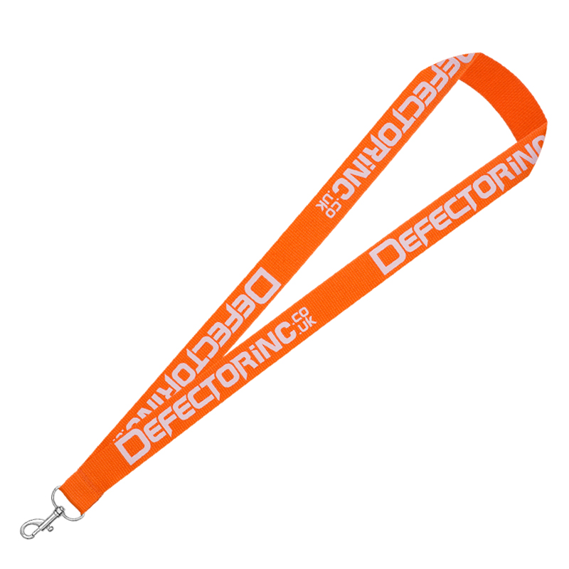 Screen printed polyester lanyards, one side printed with custom design, one text color.