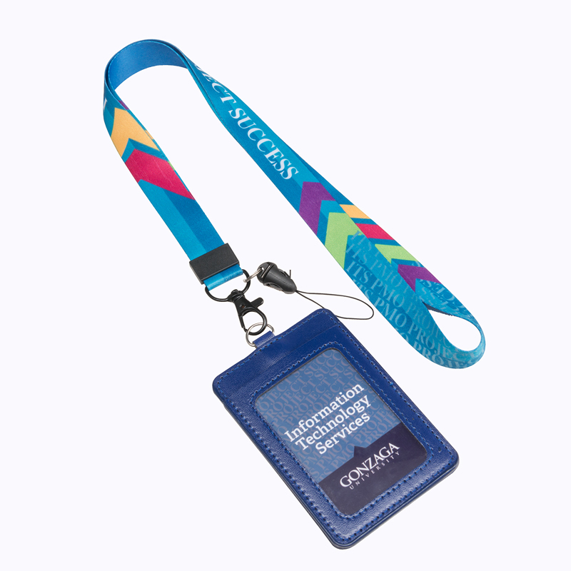 3/4"(20mm) Full Color Lanyards with PU Leather Name Tag Holder